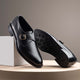These sophisticated perforated monk strap shoes will add sophistication to your collection. These shoes, made from excellent black leather with a glossy finish, have a trendy square toe shape and a single side buckle for a stylish look. The small perforations provide texture and breathability, making them ideal for formal gatherings or sophisticated business outfits.