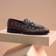 Elevate your formal look with these beautiful leather shoes in a classy blueish color. Crafted with precision and elegance, these shoes have a streamlined form with a single strap for a touch of sophisticated appeal.